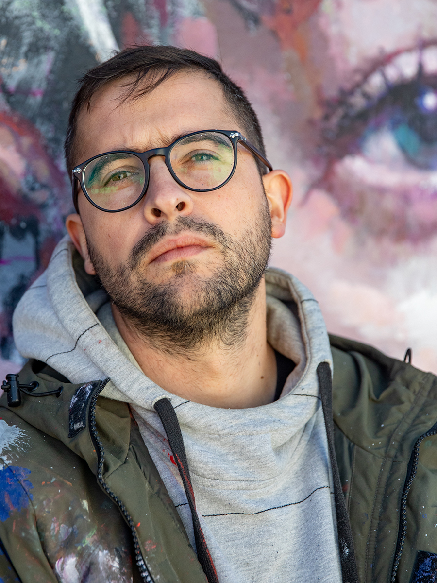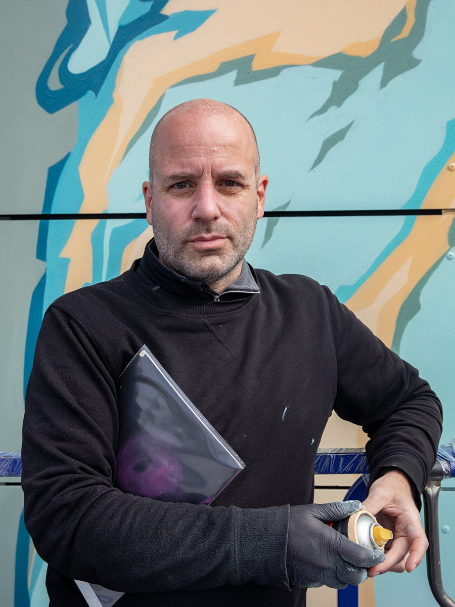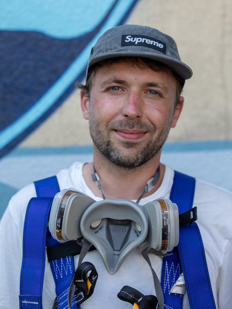 Der französische Künstler taucht schon früh, zwischen Skateboarding und Sprühdosen, in die Welt der Urban Art ein. Nachdem er das skaten aufgibt, um sich mehr auf Graffiti zu konzentrieren, verfeinerte er schnell seine typografischen Fähigkeiten und reift zu einem anerkannten Illustrator. Der Graffitibezug verleiht seiner Kunst durch komplexe Zeichnungen eine eigene Dimension.